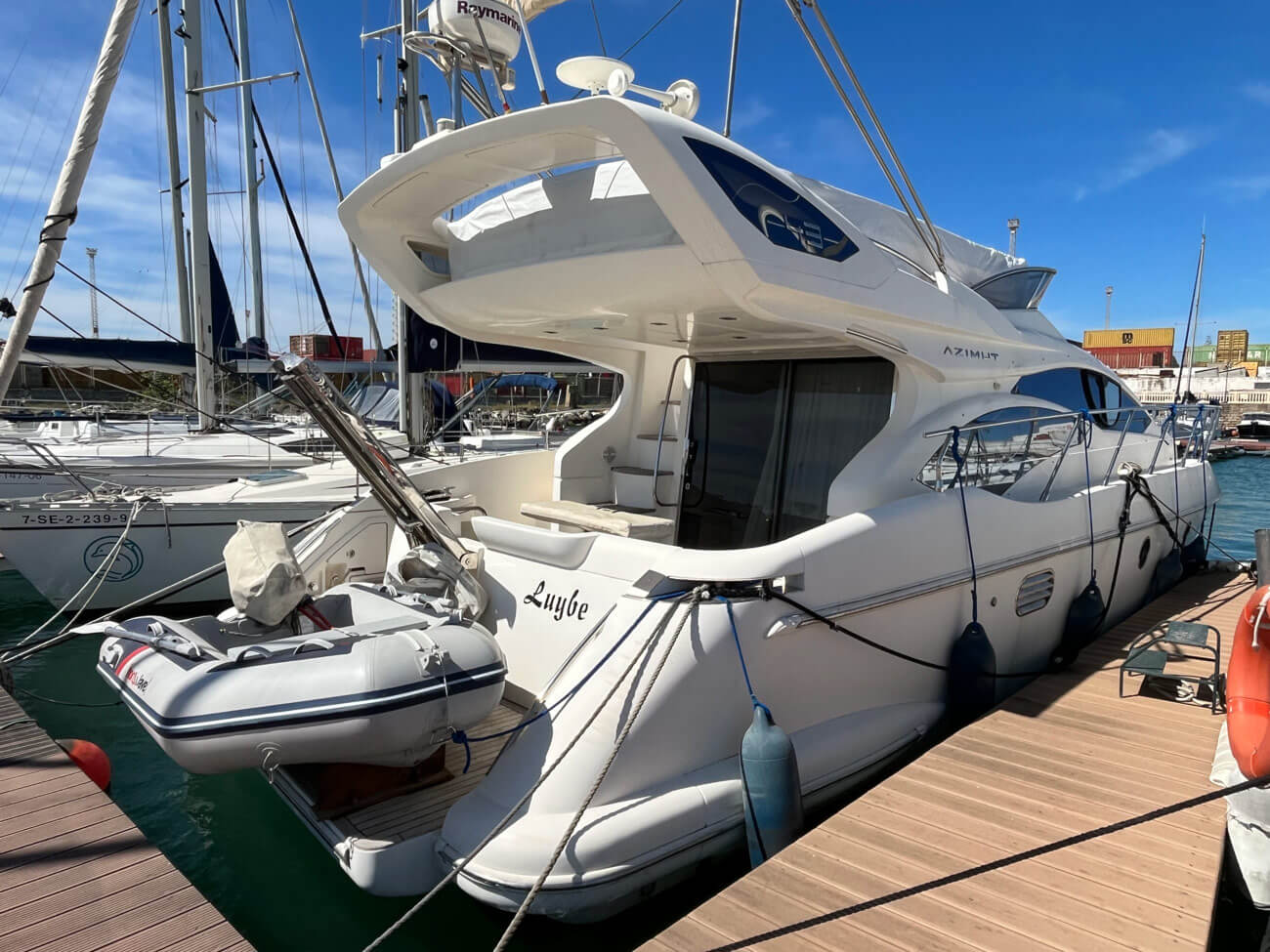 Este Azimut 43 “LUYBE”, construido en 2008 por Azimut-Benetti, es un elegante y bien mantenido yate a motor con flybridge que ofrece un equilibrio perfecto entre rendimiento, comodidad y diseño. Equipado con dos motores Cummins, proporciona una navegación fiable y un manejo suave. Su distribución incluye tres camarotes y dos baños, con un luminoso salón y una cocina totalmente equipada, ideal para una navegación confortable. Sus zonas exteriores cuentan con una espaciosa bañera, un gran flybridge y una plataforma de baño, perfectas para disfrutar de la vida en el mar. Con bandera española, certificado para 12 personas y listo para zarpar.
