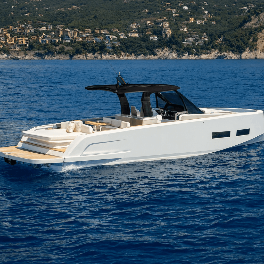 El Pardo 43 es un barco de motor deportivo y elegante que destaca por su diseño contemporáneo, navegación suave y alto nivel de confort. Con líneas dinámicas y una distribución versátil a bordo, combina rendimiento, estilo y funcionalidad en cada travesía.
