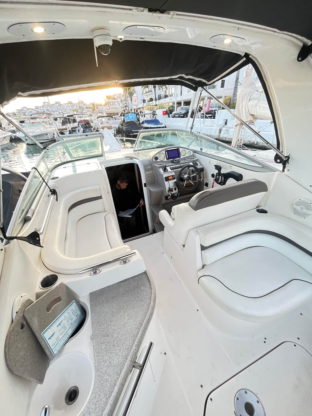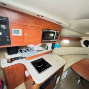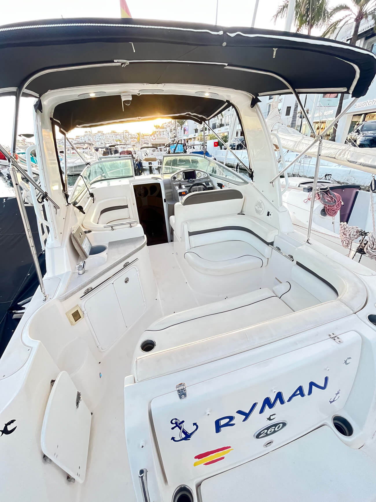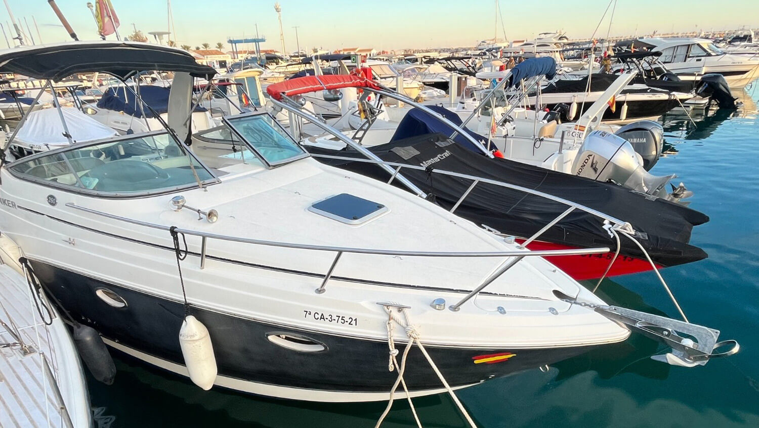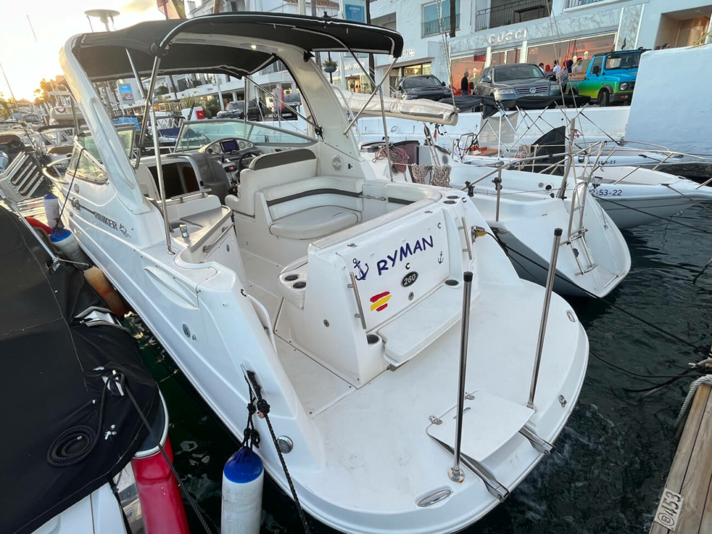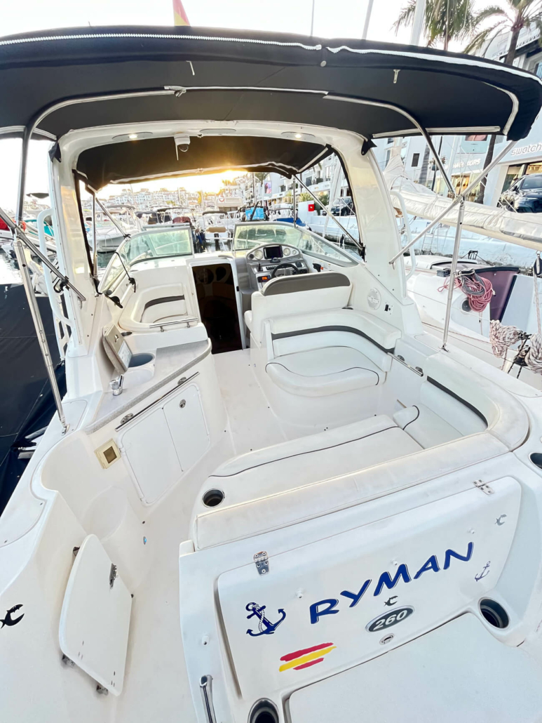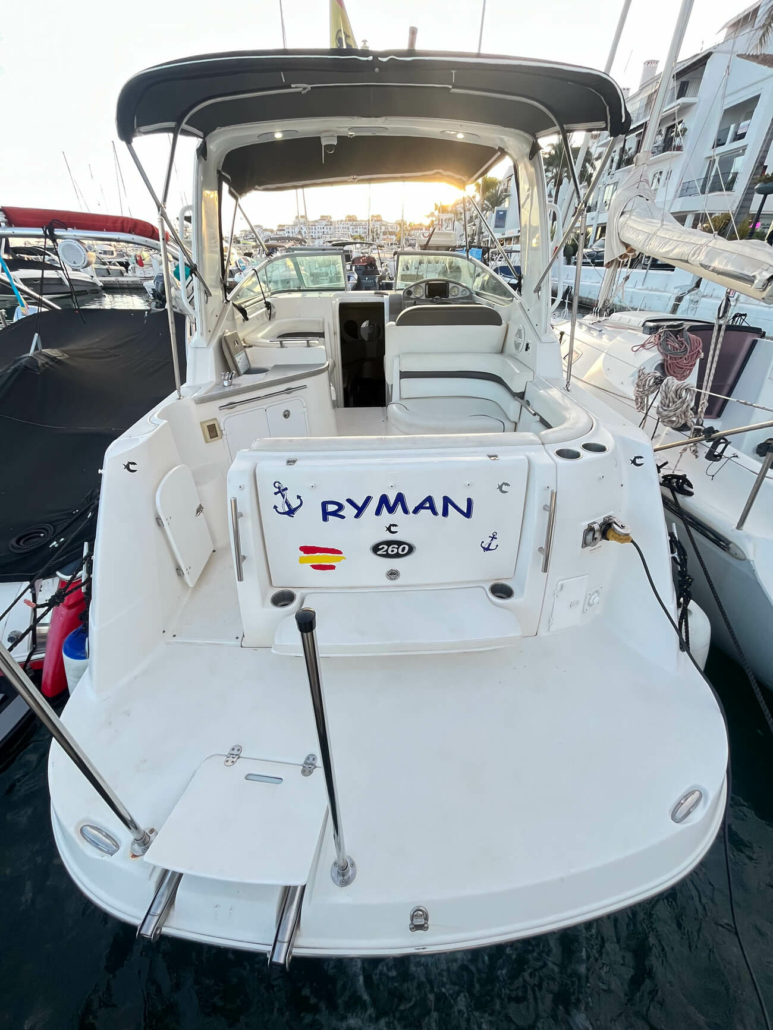 El Rinker 260 de 2007 es un crucero clásico estadounidense en excelentes condiciones, perfecto para fines de semana familiares en el Mediterráneo. Con 7,47 m de eslora total y motor Volvo Penta, navega a 20 nudos (máximo 32 personas), tiene capacidad para 2 personas en un mismo camarote y cuenta con VHF, plataforma de baño, bimini, nevera y antifouling reciente. Casco estable en V profunda, amplia cocina y baños, y está listo para la temporada 2026.