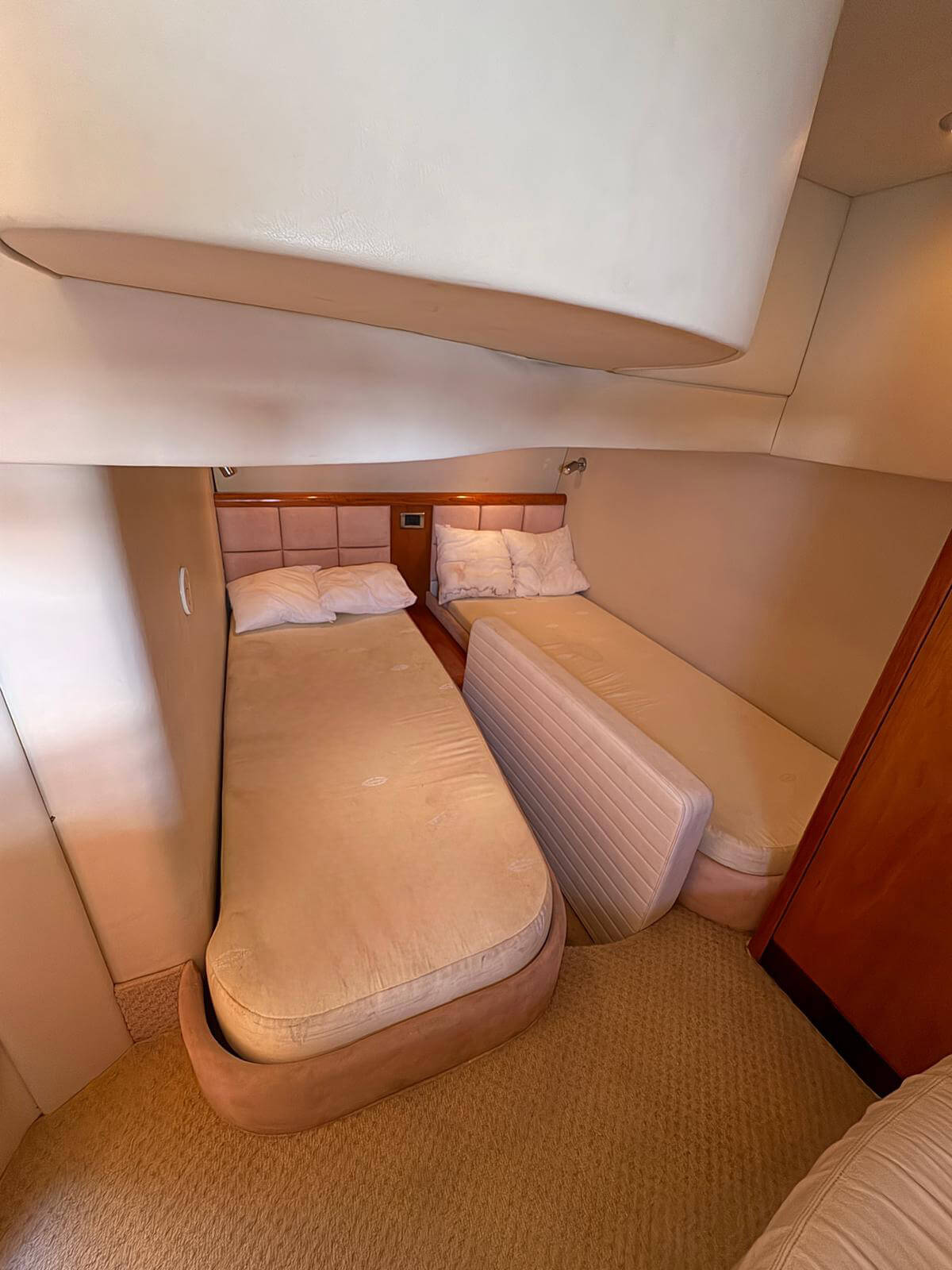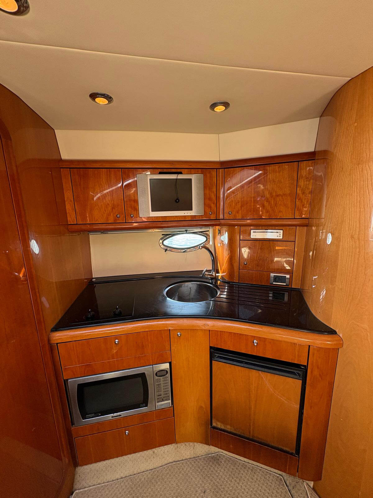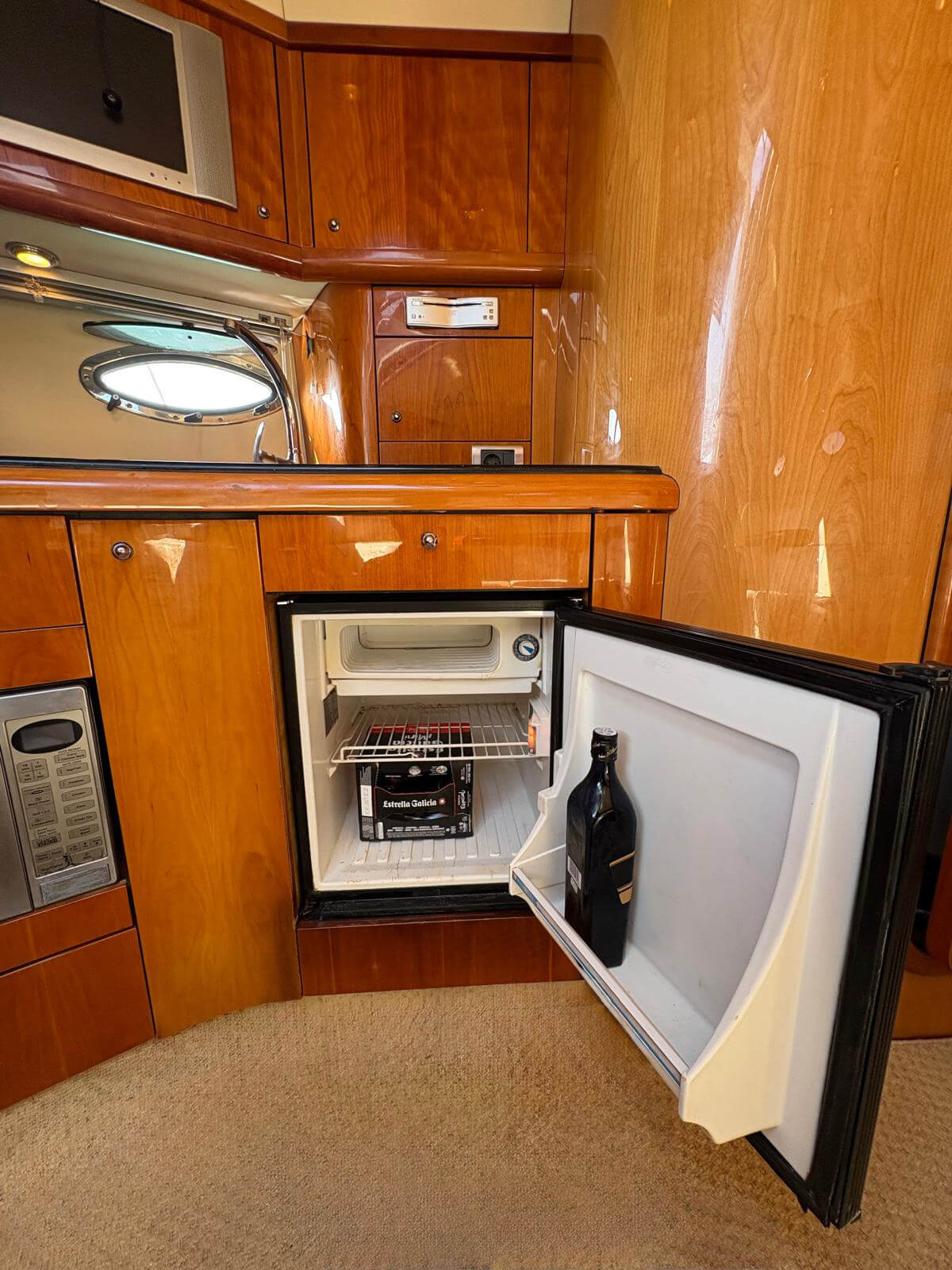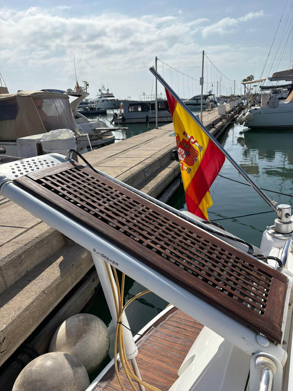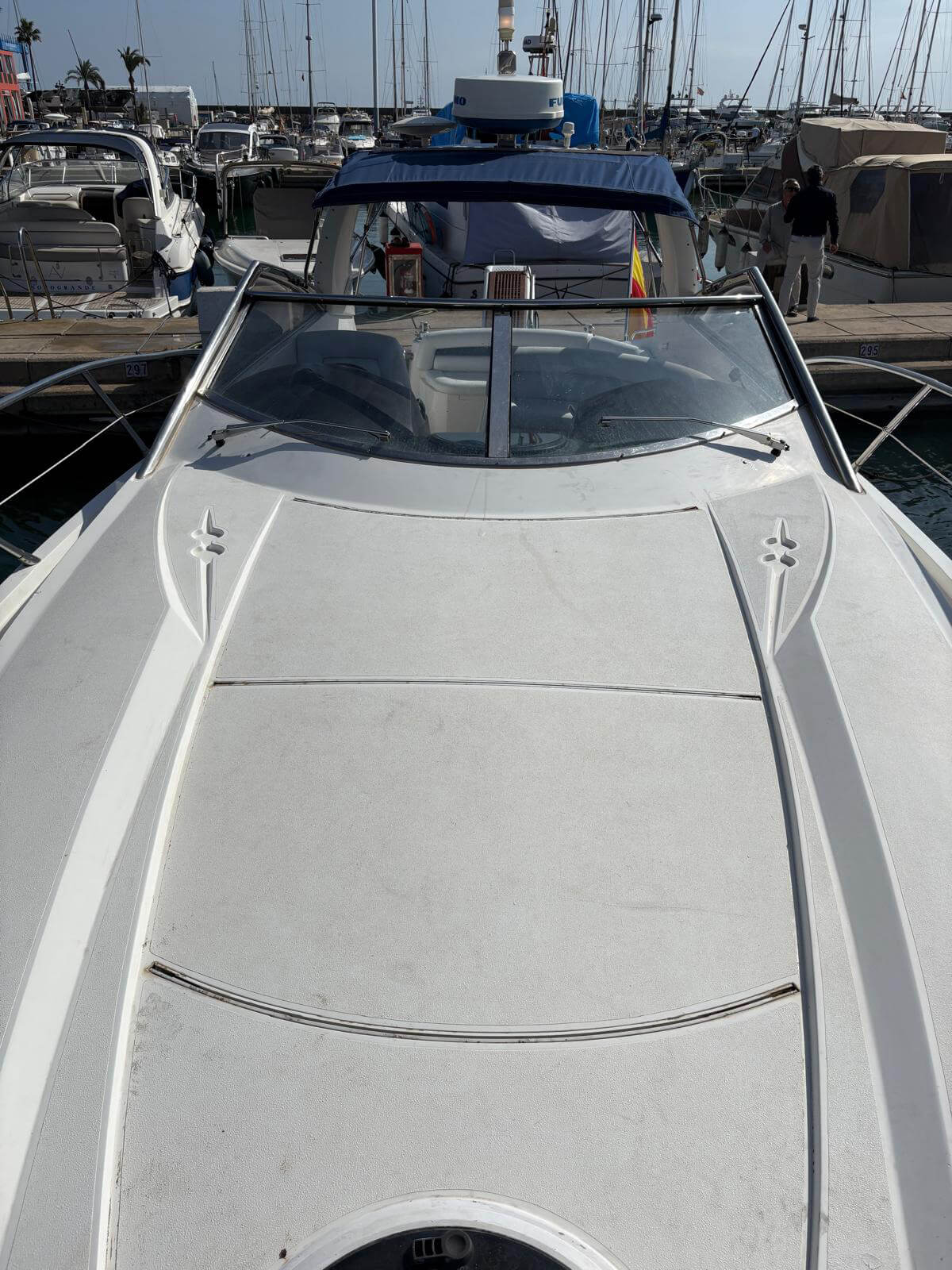Este Sunseeker Portofino 35 de 2004, en perfecto estado, es un elegante yate a motor con dos motores Volvo KAD de 300 CV que ofrece un rendimiento espectacular y un manejo sencillo. Cuenta con piloto automático, radar, GPS y pasarela automática para un embarque cómodo. Entre sus comodidades se incluyen aire acondicionado, neveras interiores y exteriores, microondas, TV con reproductor de CD y transmisión eléctrica. El yate cuenta con bañera de teca, escalera de baño y molinete eléctrico con lona de invierno. Recientemente revisado por completo, con motores y casco revisados, ha superado la última inspección técnica de navegación (ITB). Listo para disfrutar de la navegación de inmediato.